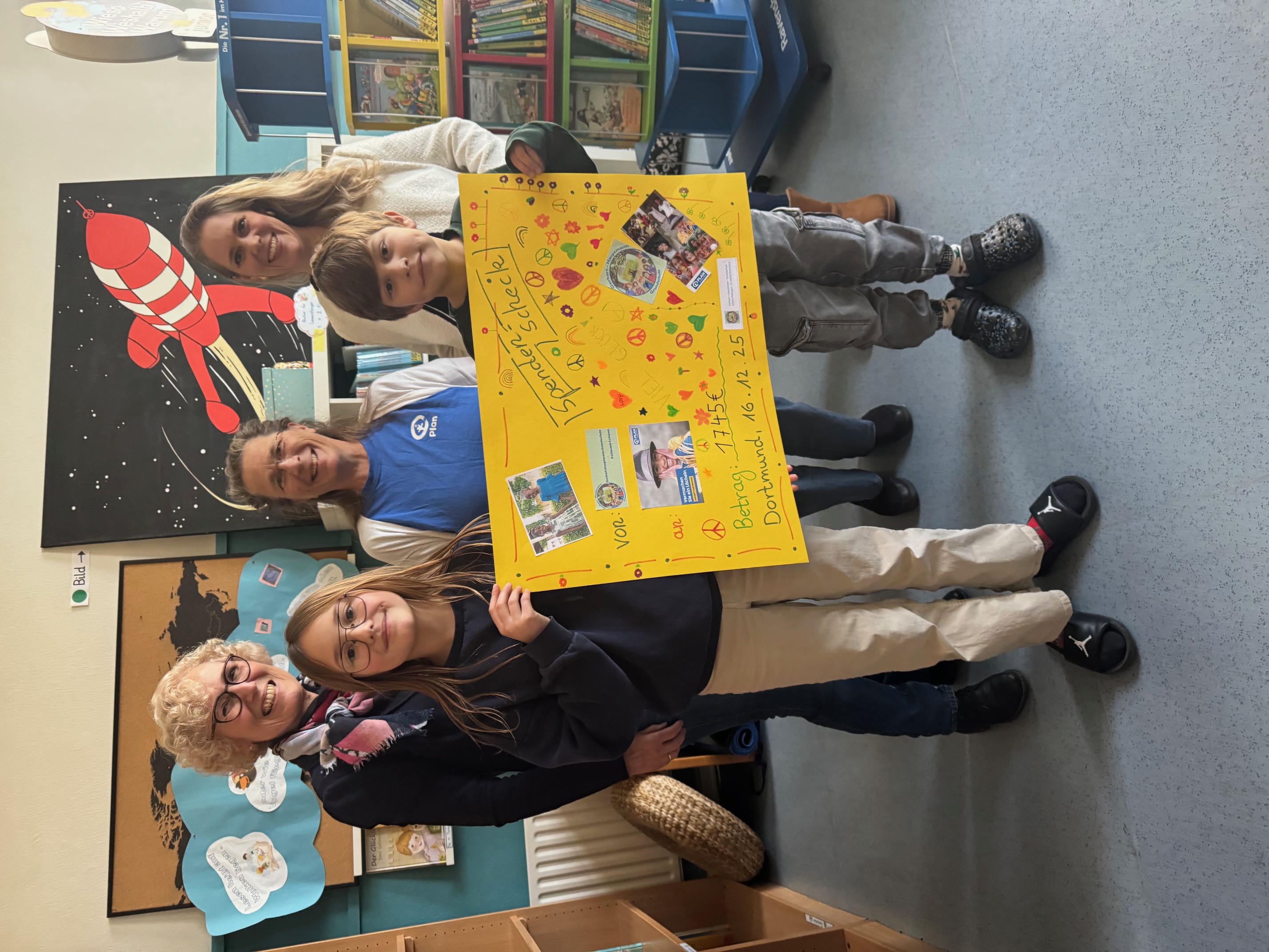 Der gesamte Erlös von 1745 Euro wurde an Plan International gespendet. Am 16.12.25 fand die Spendenübergabe in der Schule statt.