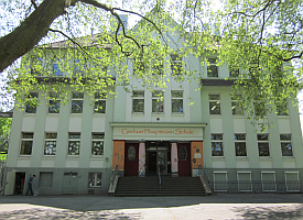 Unser Schulgebäude ist mehr als 100 Jahre alt. 2013 haben wir das 100jährige Jubiläum unseres Gebäudes gefeiert. Der Eingangsbereich wurde vor einigen Jahren im Rahmen eines Kunstprojekts unter Mitwirkung der Schülerinnen und Schüler gestaltet. |